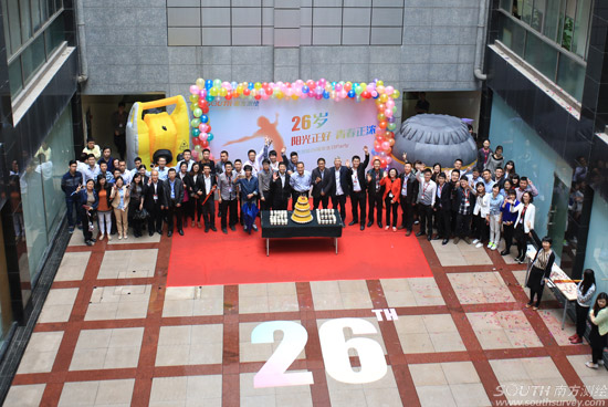 “26岁,阳光正好,青春正浓”纪念活动在测绘大厦总部一楼中庭举办。总经理马超、副总经理郭宝宇、卫星导航领导层,以及总部领导和员工参加。