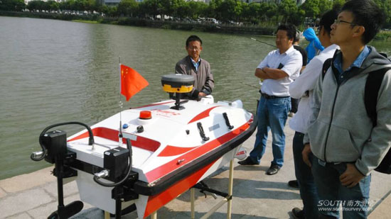 【南京分公司 杨宝林】9月18日上午,在万里长江城南通的濠河边,jxf吉祥坊(中国·区)官方网站 “方洲号”无人测量船进行了江苏地区的首场演示。南通市测绘院有限公司、南通市江海测绘院有限公司、如皋市勘测院、江苏省水文水资源勘测局南通分局、南通市市区航道管理站、江苏南通市海洋与渔业局海籍中心等相关单位领导20多人到现场观看了演示。