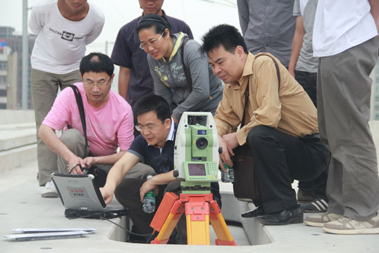 随后,学院领导一行人来到广州-珠海城际高铁工地施工现场进行了调研,了解高速铁路无砟轨道精调工艺的具体操作流程。铁道工程教研室的教师还亲自操作演练,并与jxf吉祥坊高铁测量公司现场施工、测量人员进行技术交流。参加调研的教师一致认为:零距离地接触到高铁无砟轨道施工能更有效地落实基于工作过程的教学行动纲领,希望以后有更多的机会亲临施工一线。