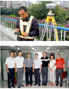 广州市城市规划勘测设计研究院林鸿总测量师(左三)张荣副总测量师(右二)丘广新副总工程师(左二)陈焕然队长(右三)合影