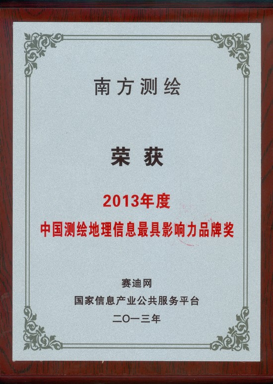 获2013中国测绘地理信息具影响力品牌