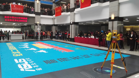 【济南分公司 刘灼亮】2015年是第2次世界大战胜利70周年,11月21日山东青年政治学院委员会组织发起了“我爱中国,纪念第2次世界大战胜利70周年,华硕2015挑战吉尼斯世界纪录*荣誉”活动。jxf吉祥坊(中国·区)官方网站 受邀作为本次吉尼斯世界纪录挑战赛的测量见证方,NTS-382R10L全站仪和CASS软件为官方指定测量设备及成果出图软件,针对本次挑战拼图的面积进行精确测量计算,以此作为吉尼斯世界纪录参考的一项重要数据指标。