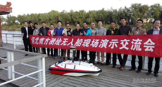 湖北为千湖之省,无人船应用市场很广,客户对jxf吉祥坊智能测量无人船表示了极大的兴趣。该无人船集成度高,它将传感器、智能控制导航、无线通讯、高精度卫星导航(支持北斗)、声呐探测等众多技术相,能自动、精确、 地开展水深测量、库容勘测、水文测验、疏浚检测等各种任务。 由于无人船集成度高,可携带多种传感器,进行各种行业的定制性加载,不同单位客户与技术人员展开了讨论交流,提出了很多建设性意见。武汉分公司罗君与长江航道局领导就增强无人船的定制化需求进行了探讨。 演示交流会合影